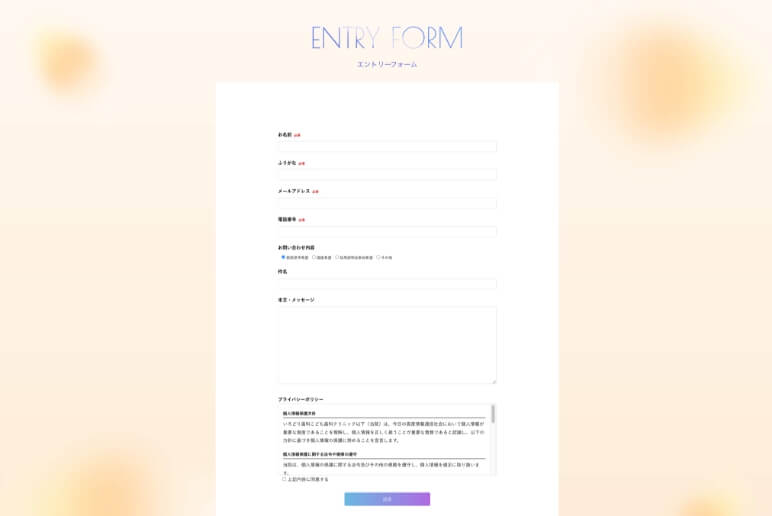 (FV+メッセージ+職種紹介+会社の特徴+募集要項+エントリーフォーム)
