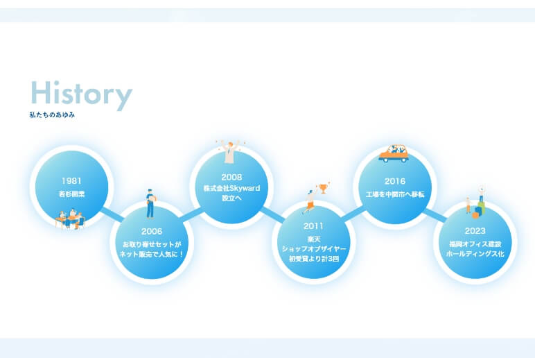 これまでの業績や歴史を伝えるコンテンツ。事業やこれまでの業績を伝えて、求職者に安心感を与えることができます!